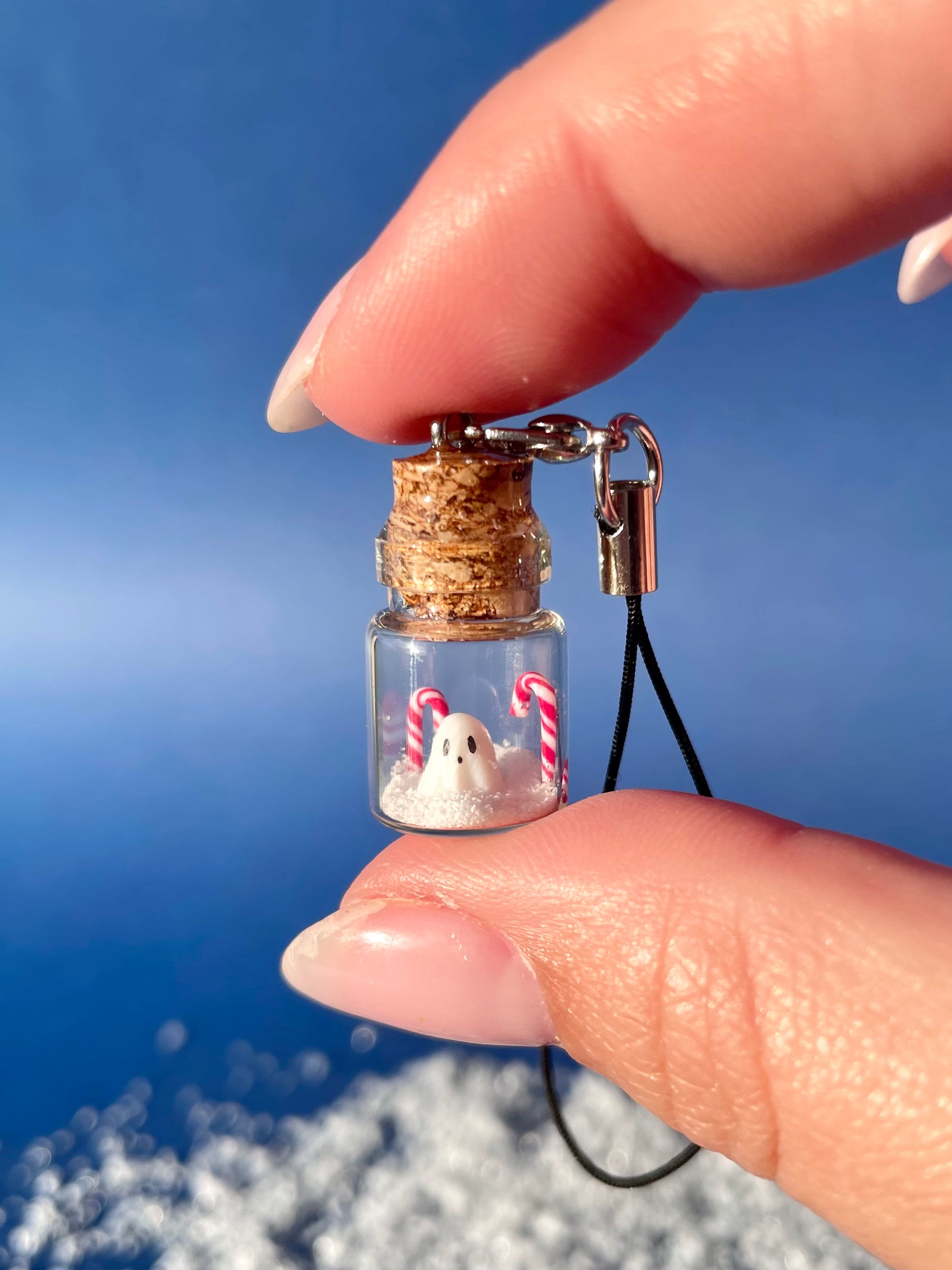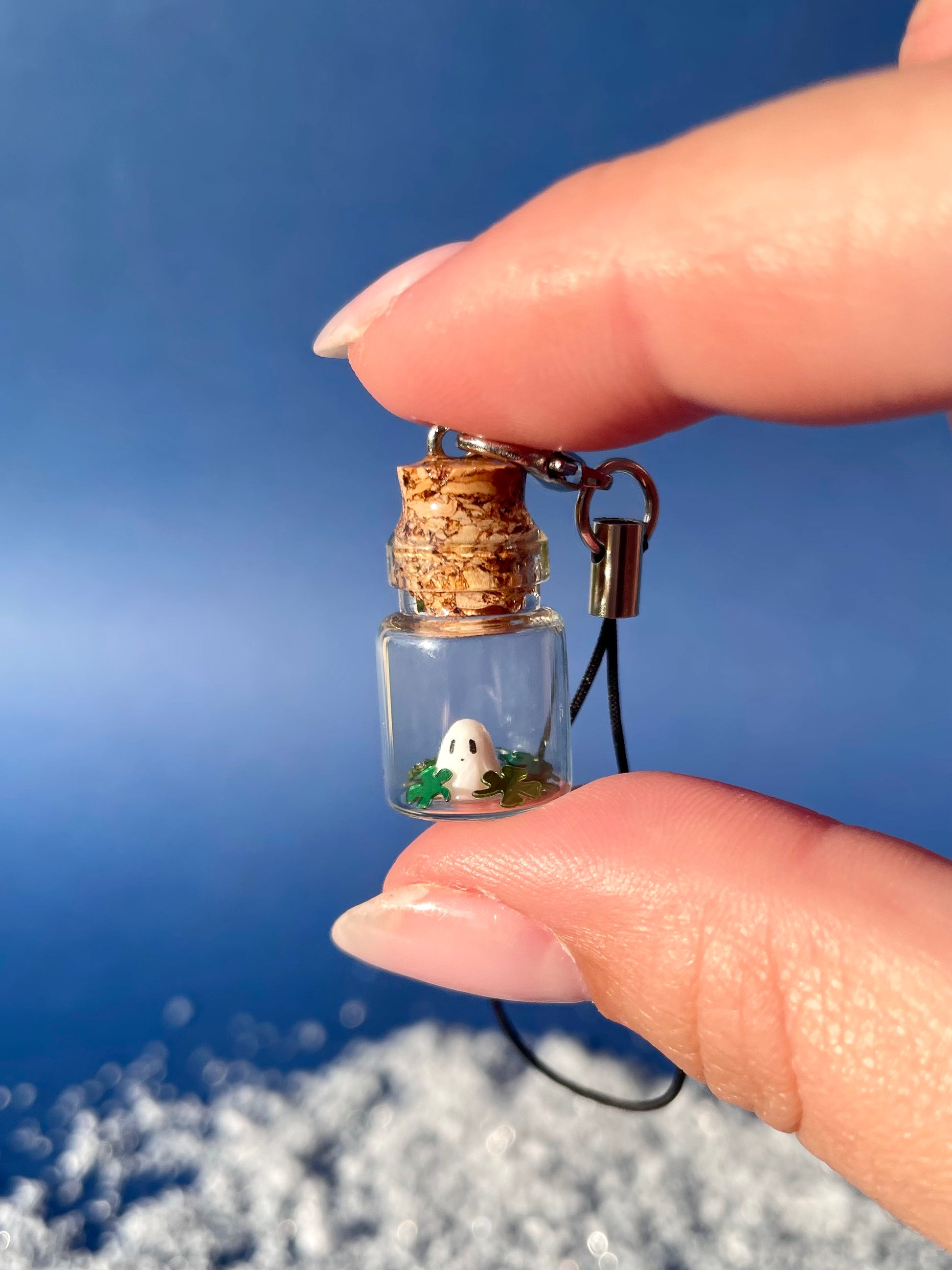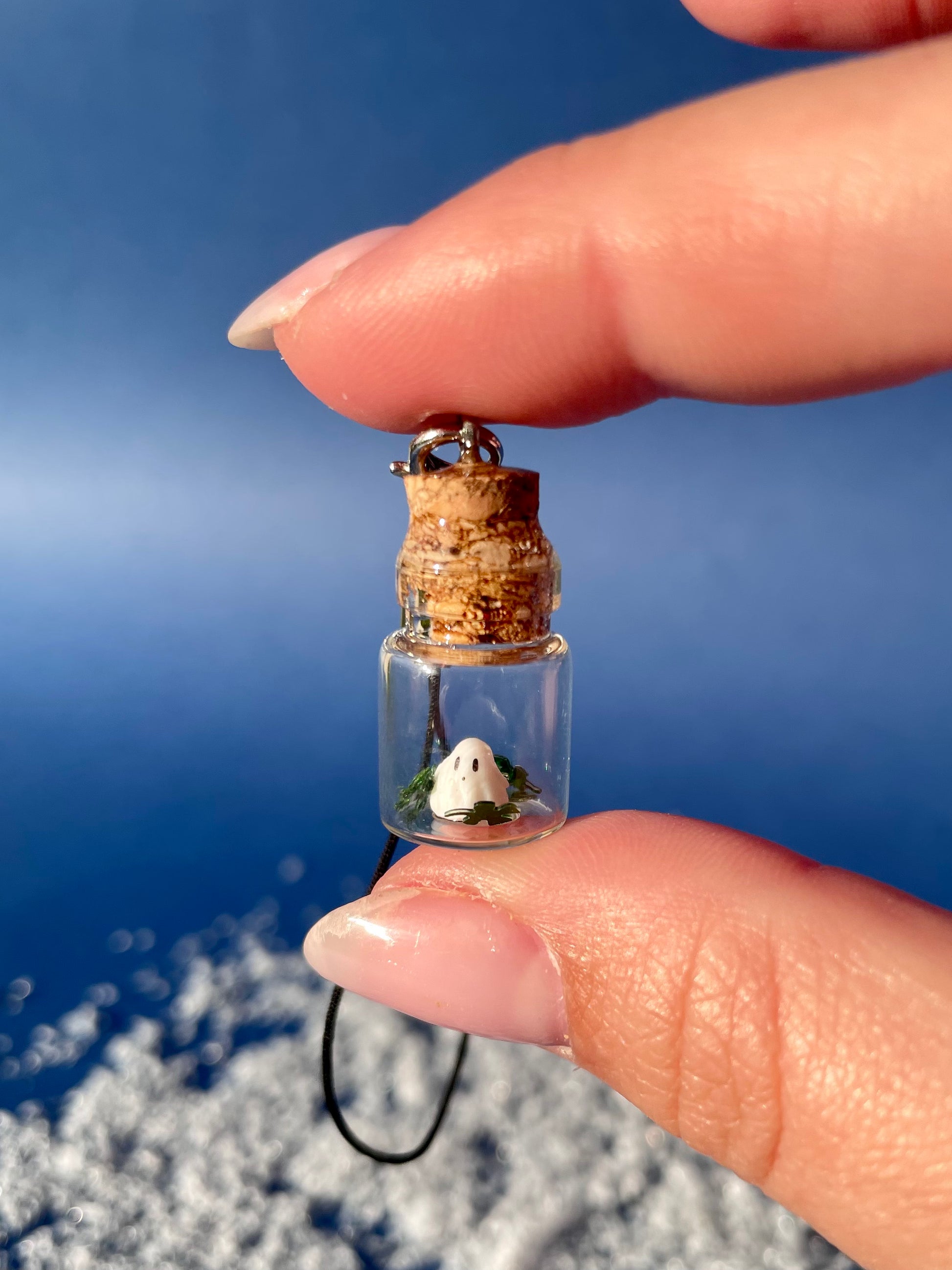 De minuscules fioles en verre renfermant de petits fantômes sculptés à la main, comme des âmes curieuses capturées dans un souffle. Chaque fiole est unique, abritant un esprit différent — parfois timide, parfois malicieux. Ces petites créations allient délicatesse et mystère, parfaites pour veiller sur ton espace ou glisser un brin de magie dans ton quotidien.