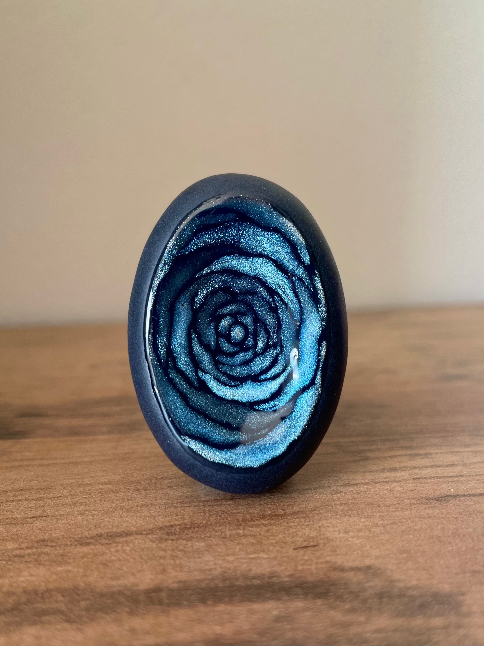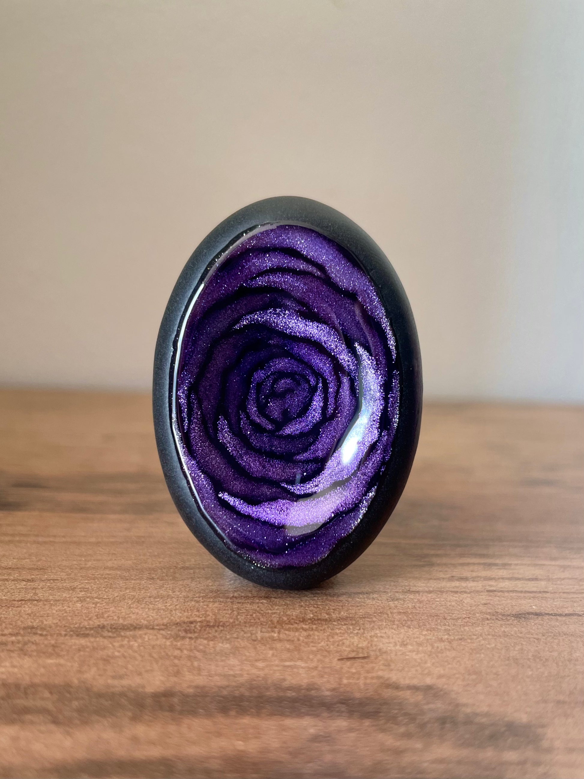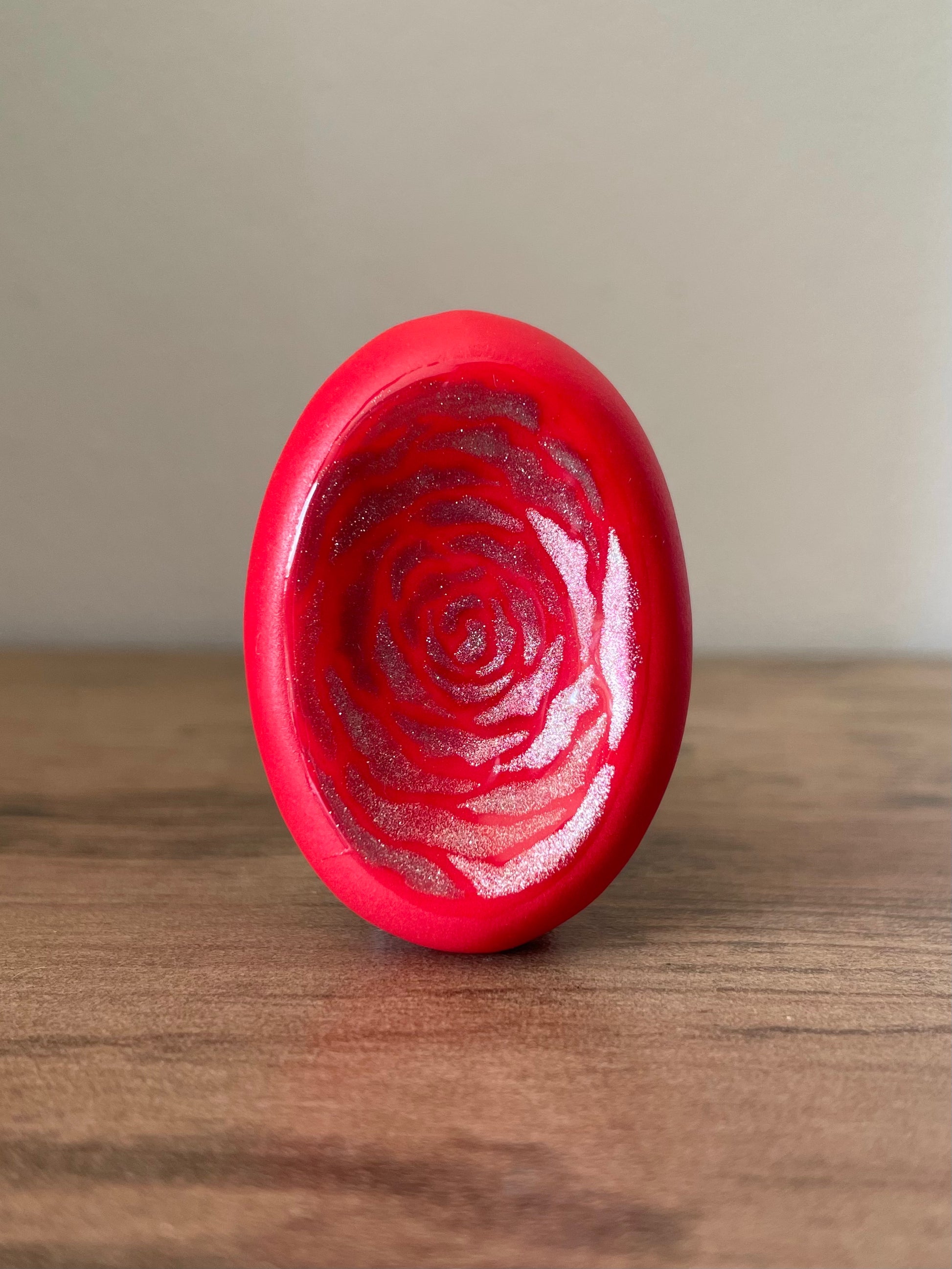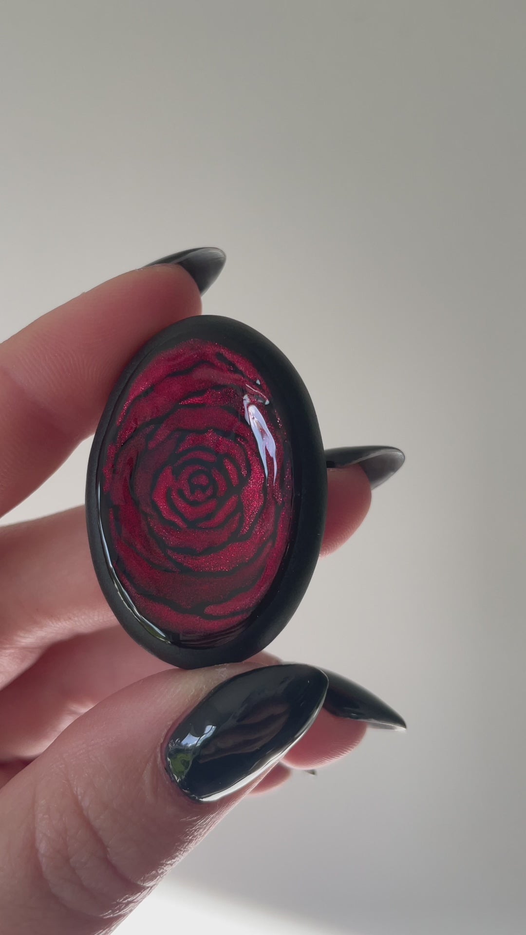 Ces pierres s’inspirent de la rose, de sa douceur et de sa profondeur. Chaque création est peinte à la main, avec un travail délicat autour des pétales et des nuances, pour évoquer la fleur sans la figer.