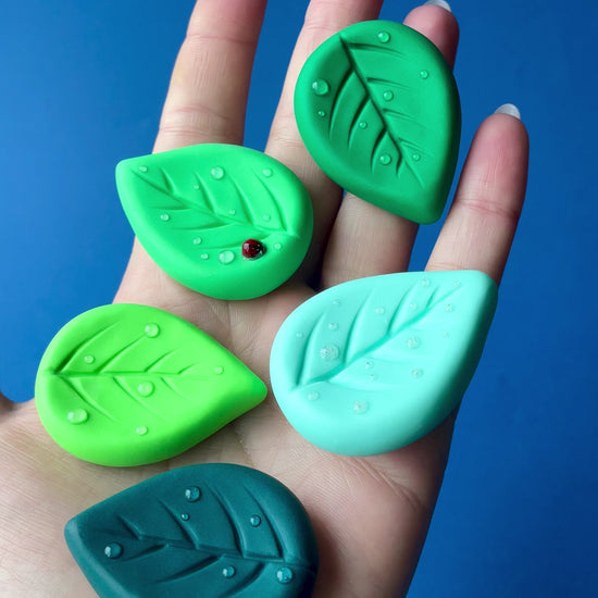 Collection feuilles avec des petites gouttes d'eau en relief.